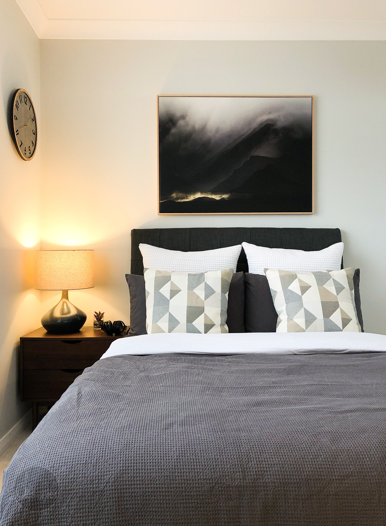 Scope: Floor planning | Customised joinery: design, drawings, colour, finish | Selections : Furniture, soft furnishings, bed linen, light fittings and decor | Styling
